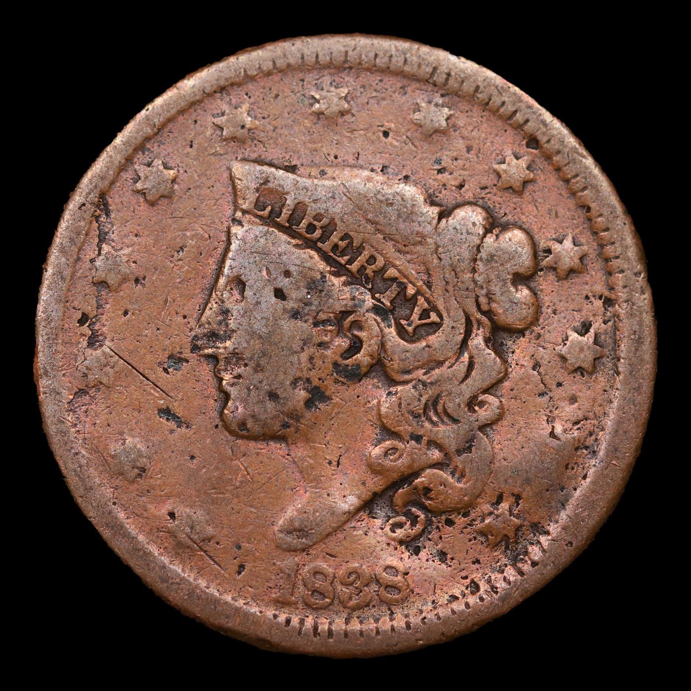 1838 Coronet Head Large Cent 1c Grades vg, very good