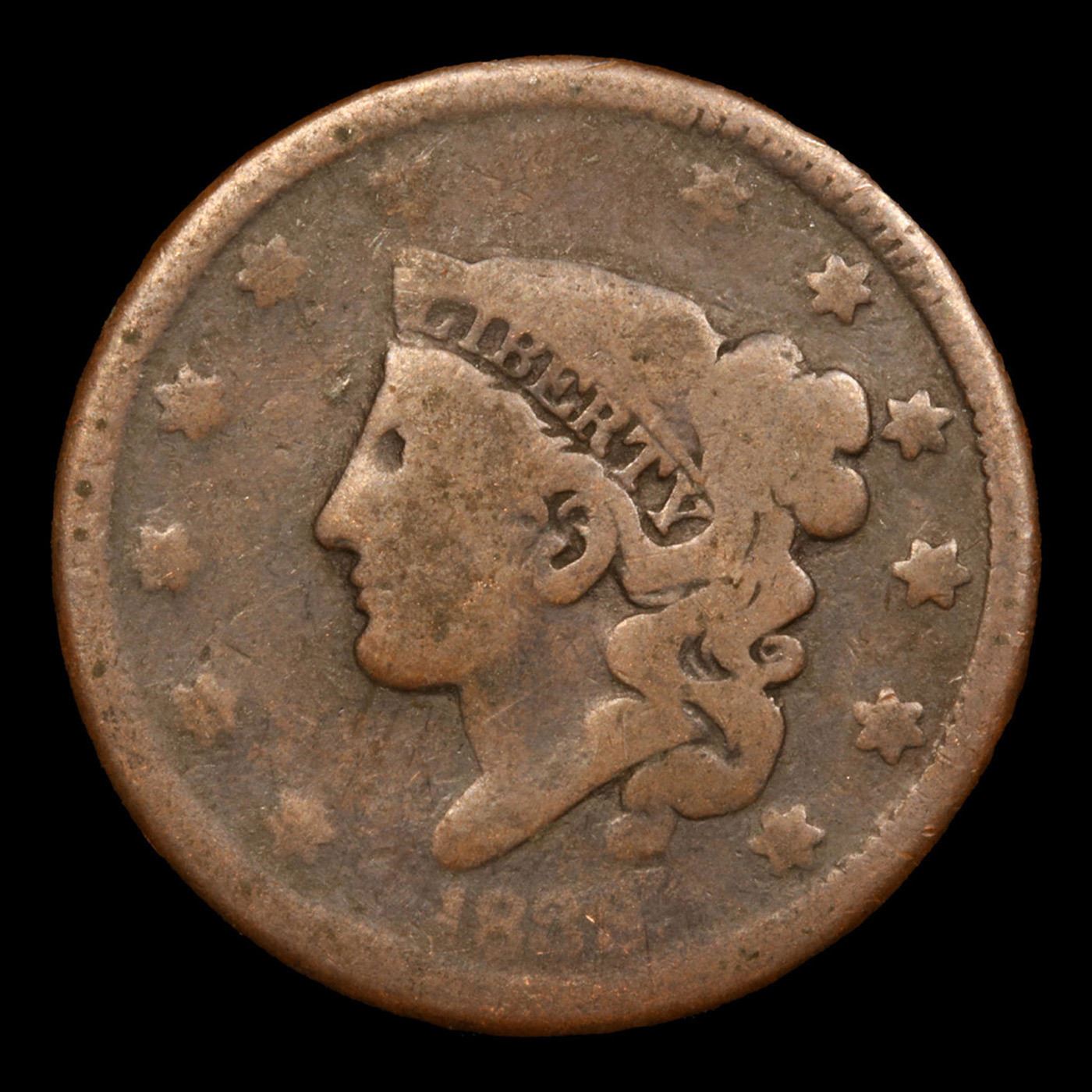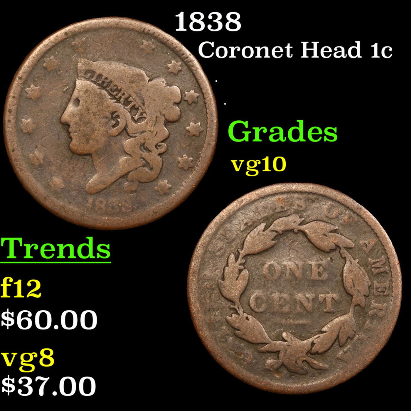 1838 Coronet Head Large Cent 1c Grades vg+.