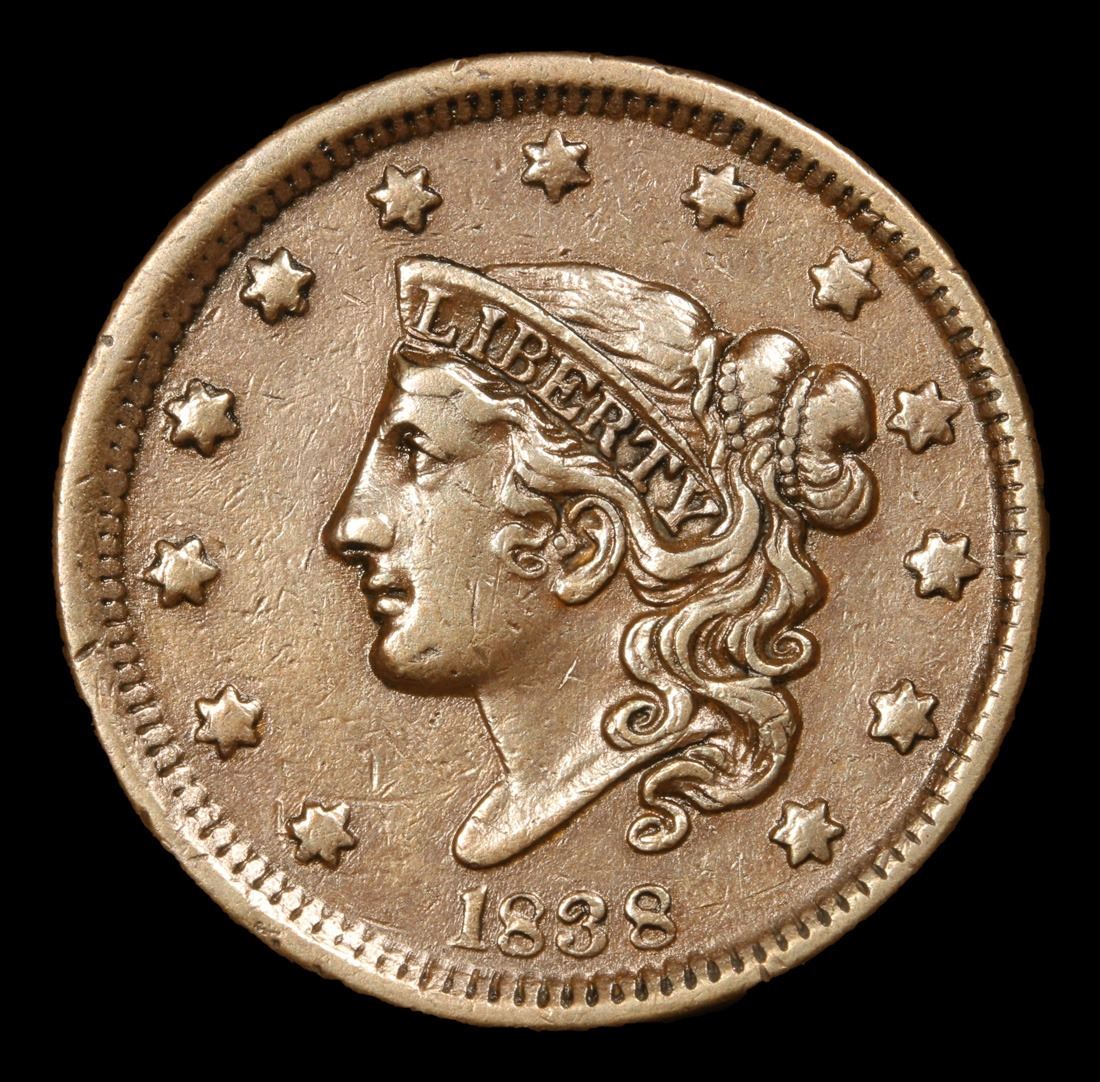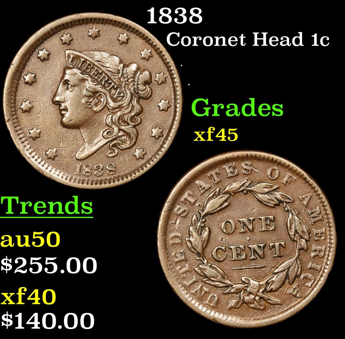 1838 . . Coronet Head Large Cent 1c Grades xf+. A Corey's Pick