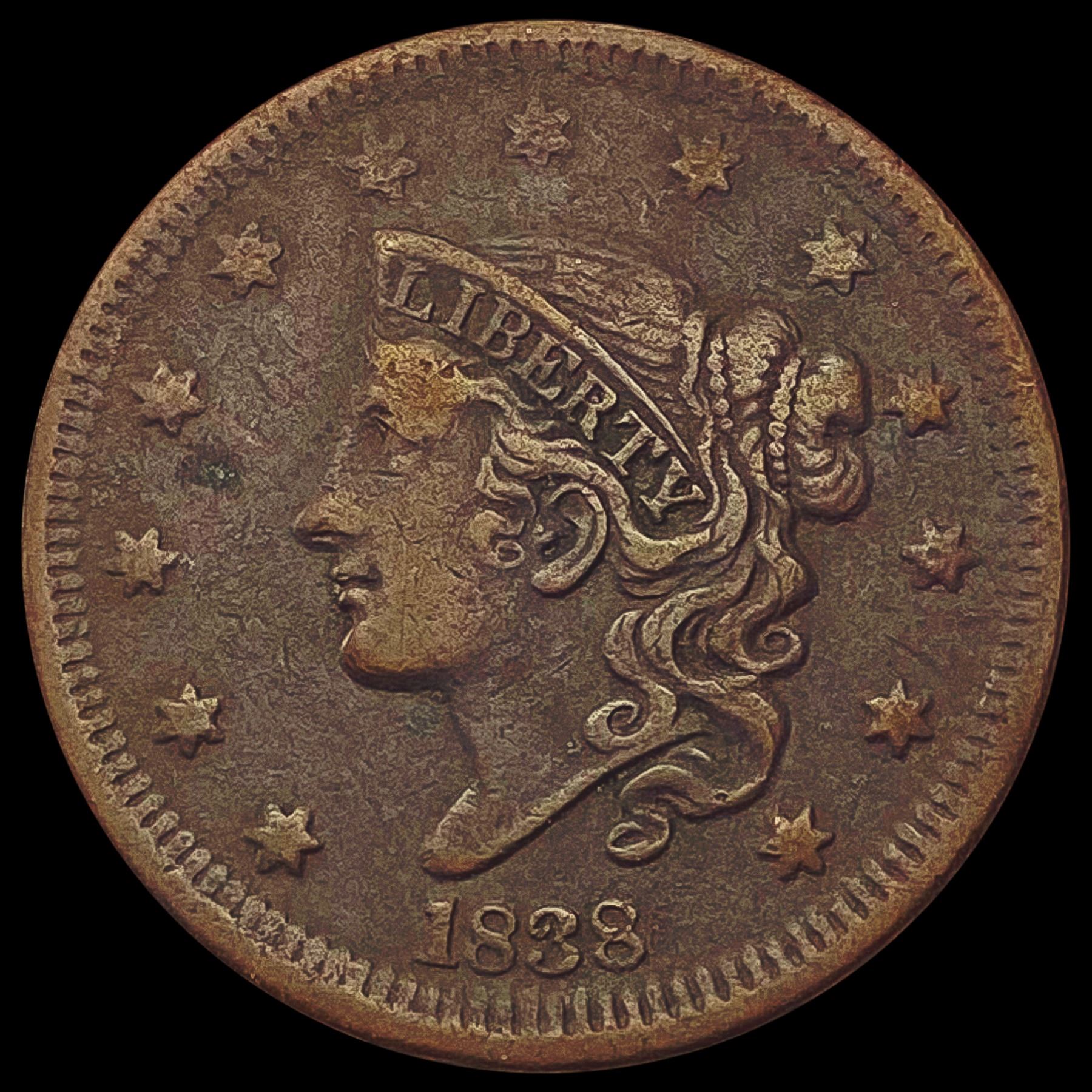 1838 Coronet Head Large Cent LIGHTLY CIRCULATED