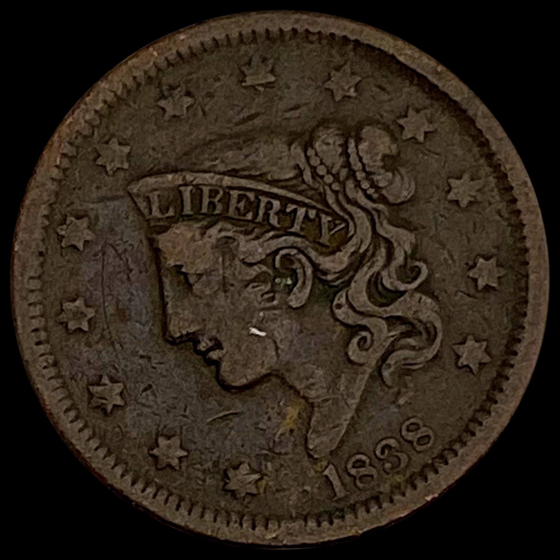 1838 Coronet Head Large Cent LIGHTLY CIRCULATED