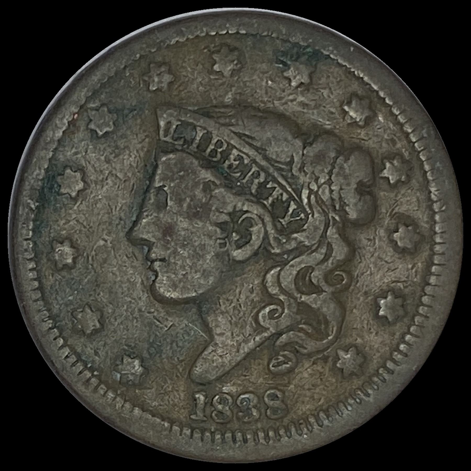 1838 Coronet Head Large Cent LIGHTLY CIRCULATED