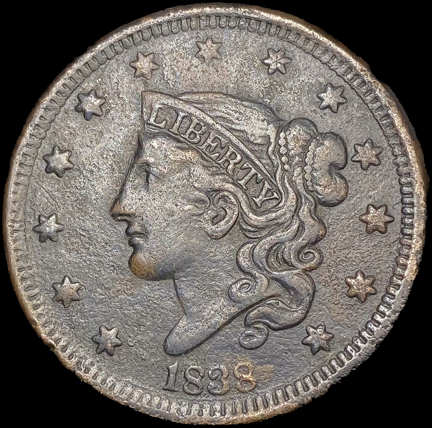 1838 Coronet Head Large Cent NEARLY UNCIRCULATED