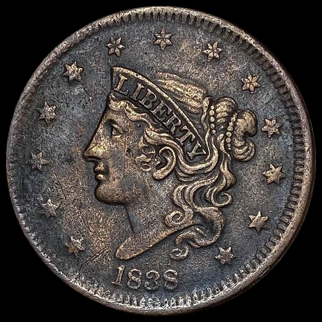 1838 Coronet Head Large Cent NEARLY UNCIRCULATED