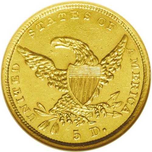 1838-D $5 AU58 NGC. McCloskey 1-A, R.3. The discovery