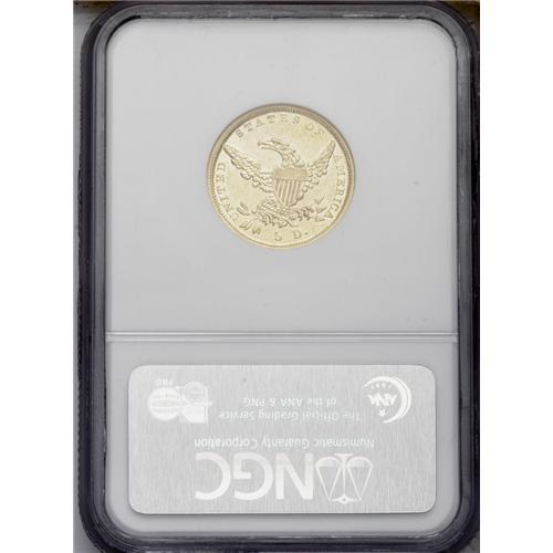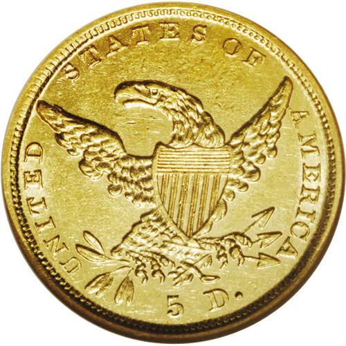 "1838-D $5 AU58 NGC. McCloskey 1-A, R.3."