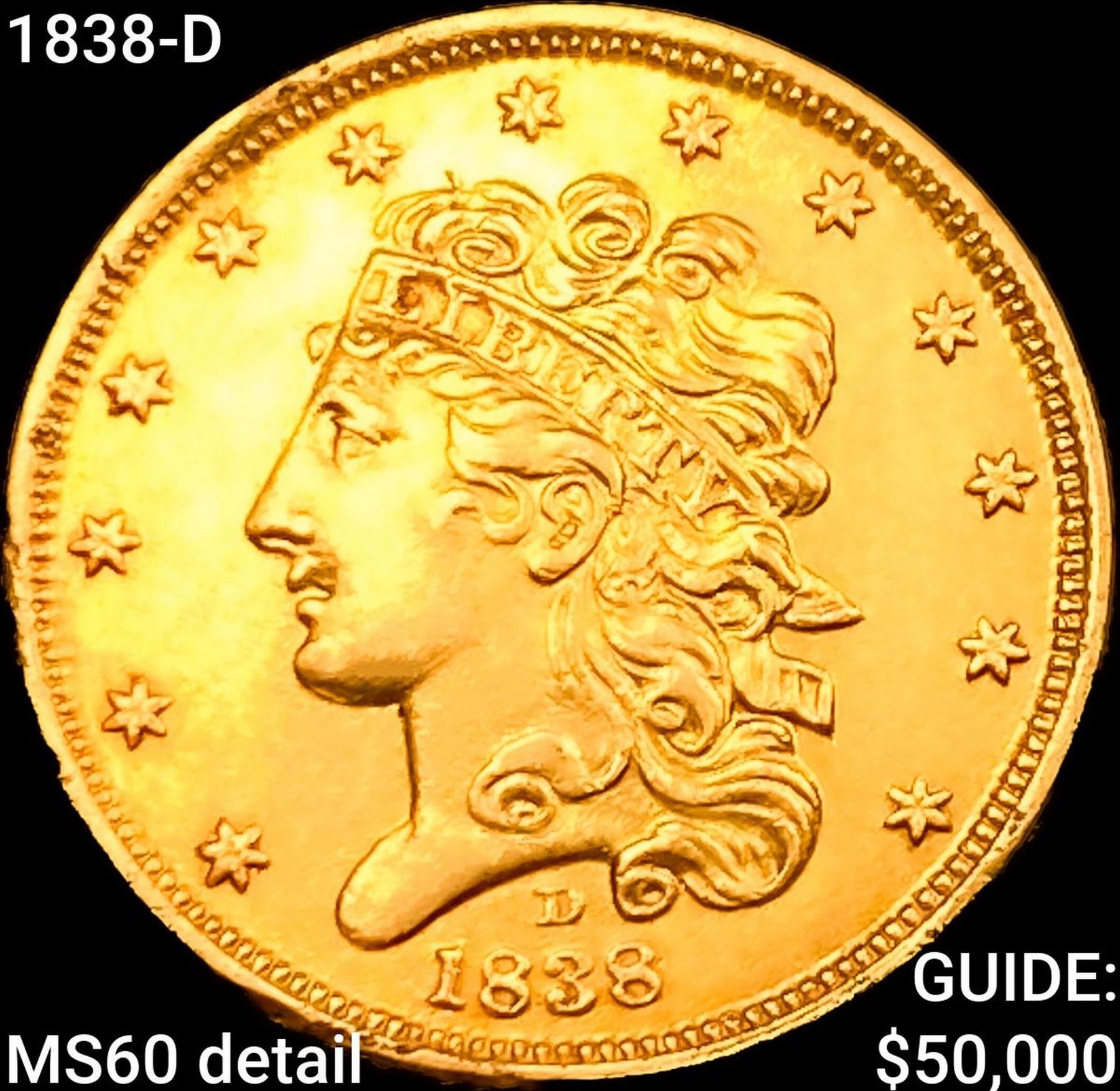 1838-D $5 Gold Half Eagle UNCIRCULATED