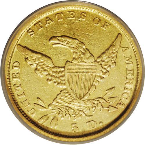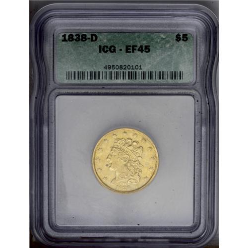 "1838-D $5 XF45 ICG. McCloskey 1-A, R.3,"