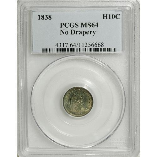 1838 H10C Large Stars MS64 PCGS. Golden-brown and aqua