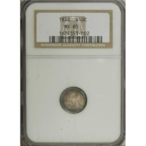 <B>1838 H10C Large Stars MS65 NGC.</B></I> Rose-gray and deep electric-blue toning graces both sides of this luminous Gem. A remarkably well preserved piece that displays pleasing detail.<BR><BR><b>Shipping:</b> Coins & Currency (<a target="_blank" href="http://www.heritageauctions.com/common/shipping.php">view shipping information</a>)
