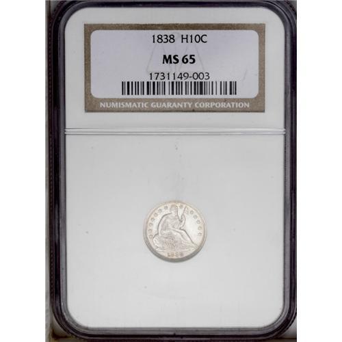 <B>1838<H10C> Large Stars MS65 NGC.</B></I> Well struck with pleasing luster and light golden color on the obverse. The reverse displays an even coating of lilac-gray patina. Several of the obverse stars are repunched, and both sides of the coin are blemish-free.