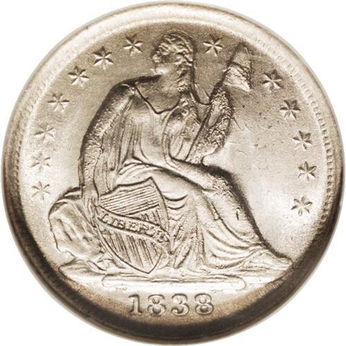 <B>1838 H10C Large Stars MS66 NGC.</B></I> A lustrous cream-gray Premium Gem with unmarked surfaces and outstanding eye appeal. Crisply struck, although the denticles are soft, partly due to the late die state. Struck from heavily clashed and rusted dies. The Stars, No Drapery subtype was struck only between 1838 and 1840.<BR><BR><b>Shipping:</b> Coin/Currency (<a target="_blank" href="http://www.heritageauctions.com/common/shipping.php">view shipping information</a>)