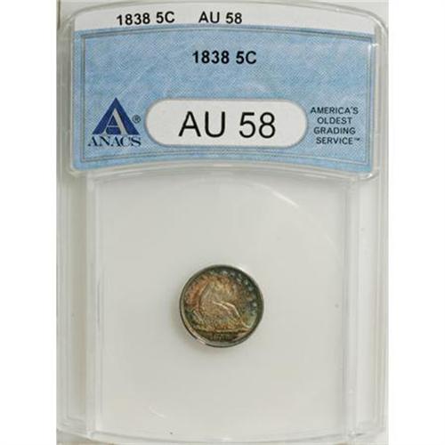 <B>1838 H10C Large Stars, No Drapery AU58 ANACS.</B></I> NGC Census: (57/463). PCGS Population (40/308). Mintage: 2,225,000. Numismedia Wsl. Price for NGC/PCGS coin in AU58: $165. (#4317)<BR><BR><B>Coin Engraver:</B> Christian Gobrecht<BR><BR><b>Shipping:</b> Coins & Currency (<a target="_blank" href="http://www.heritageauctions.com/common/shipping.php">view shipping information</a>)