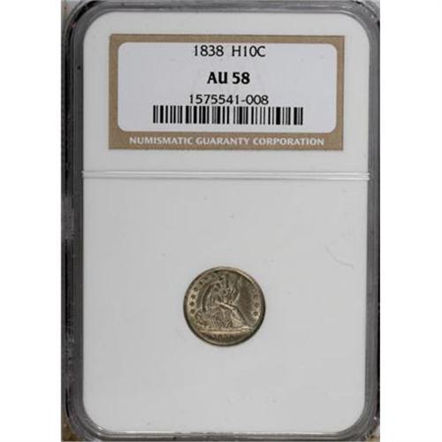 <B>1838 H10C Large Stars, No Drapery AU58 NGC.</B></I> NGC Census: (56/462). PCGS Population (40/303). Mintage: 2,225,000. Numismedia Wsl. Price for NGC/PCGS coin in AU58: $165. (#4317)<BR><BR><B>Coin Engraver:</B> Christian Gobrecht<BR><BR><b>Shipping:</b> Coins & Currency (<a target="_blank" href="http://www.heritageauctions.com/common/shipping.php">view shipping information</a>)