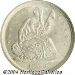 <table><tr><td><TABLE cellSpacing=0 cellPadding=0 width="100%" bgColor=#000000 border=0><TBODY> <TR><TD width="100%"><TABLE cellSpacing=1 cellPadding=3 width="100%" border=0><TBODY><TR><TD width="100%" bgColor=#79735c><FONT face=arial color=#ffffff size=3><B>Description</B> </FONT></TD></TR><TR><TD width="100%" bgColor=#ffffff><FONT face=arial size=2><B>1838 H10C Small Stars MS65 NGC.</B></I> V-2. Blythe Die State 4. The lightly clashed reverse die is distinct from that used on examples of the V-1 die marriage. Liberty's portrait is extensively rusted, and many of the stars are attenuated from repeated die polishing. The peak of the 3 in the date is recut, and a crack is observed from the rim through star 13 to Liberty's right (facing) arm. A pinscratch is well concealed near Liberty's cap. An untoned, silver-white representative for the Gem quality first-year type collector. The No Drapery, Stars Seated Half Dime was produced from 1838-1840. Population: 5 in 65, 0 finer (2/04). </FONT></TD></TR></TBODY></TABLE></TD></TR></TBODY></TABLE><BR><A name=PricesRealized></A><TABLE cellSpacing=0 cellPadding=0 width="100%" bgColor=#000000 border=0><TBODY><TR><TD width="100%"><TABLE cellSpacing=1 cellPadding=3 width="100%" border=0><TBODY><TR><TD width="100%" bgColor=#79735c><A name=PR><FONT face=arial color=#ffffff size=3><B>Previous Prices from Heritage Auctions</B> </FONT></A></TD></TR><TR><TD bgColor=#f6f6ed><TABLE cellSpacing=0 cellPadding=0 width="100%" border=1><TBODY><TR><TD align=middle width="33%"><B>Date</B></TD><TD align=middle width="33%"><B>Service</B></TD><TD align=middle width="33%"><B>Price</B></TD></TR><TR bgColor=whitesmoke><TD width="33%"><B>08/01/1995</B></TD><TD width="33%">NGC</TD><TD width="33%">$3,300.00</TD></TR></TBODY></TABLE></TD></TR><TR><TD bgColor=#ffffff><FONT face=arial size=1 ?>PLEASE NOTE: All prices realized reflect the final hammer price PLUS the buyer's premium in auctions that charge a buyer's premium. Each item has a notation at the top of the listing indicating whether that lot included a buyer's premium. Example: A item that sells with a final hammer price of $100 and a 20% buyer's premium will display with a price realized of $120. All information listed is intended to be as accurate as possible, but errors are possible. Please use this guide carefully and inform us of any inaccuracies. </FONT></TD></TR></TBODY></TABLE></TD></TR></TBODY></TABLE><BR><TABLE cellSpacing=0 cellPadding=0 width="100%" bgColor=#000000 border=0><TBODY><TR><TD width="100%"><TABLE cellSpacing=1 cellPadding=3 width="100%" border=0><TBODY><TR><TD width="100%" bgColor=#79735c colSpan=6><FONT face=arial color=#ffffff size=3><B>Price Guide*</B> </FONT></TD></TR><TR bgColor=#f6f6ed><TD align=middle><B>Grade</B> </TD><TD align=middle><B>Coin World<BR>(Trends)</B> </TD><TD align=middle><B>Numismedia<BR>Retail</B> </TD><TD align=middle><B>Numismedia<BR>Wholesale</B> </TD><TD align=middle><B>Coin<BR>Universe</B> </TD><TD align=middle><B>Heritage<BR>Value Index</B> </TD></TR><TR bgColor=#ffffff><TD align=middle>64</TD><TD align=right>$2,000.00</TD><TD align=right>---</TD><TD align=right>---</TD><TD align=right>$1,700.00</TD><TD align=right>$1,208.33</TD></TR><TR style="FONT-WEIGHT: bold" bgColor=#cccfdd><TD align=middle>65</TD><TD align=right>$5,000.00</TD><TD align=right>---</TD><TD align=right>---</TD><TD align=right>---</TD><TD align=right>$3,145.00</TD></TR><TR bgColor=#ffffff><TD align=middle>66</TD><TD align=right>---</TD><TD align=right>---</TD><TD align=right>---</TD><TD align=right>---</TD><TD align=right>---</TD></TR><TR bgColor=#ffffff><TD colSpan=6><FONT size=1>*All information listed is intended to be as accurate as possible, but errors are possible. No item may be returned or refused based on this information which is provided as a service to our customers. You should contact each pricing source directly to determine the accuracy of this information. </FONT></TD></TR></TBODY></TABLE></TD></TR></TBODY></TABLE><BR><TABLE cellSpacing=0 cellPadding=0 width="100%" bgColor=#000000 border=0><TBODY><TR><TD width="100%"><TABLE cellSpacing=1 cellPadding=3 width="100%" border=0><TBODY><TR><TD width="100%" bgColor=#79735c><FONT face=arial color=#ffffff size=3><B>Population Guide</B> </FONT></TD></TR><TR bgColor=#ffffff><TD align=middle><!-- Begin Output of Population Grid--><TABLE cellSpacing=0 cellPadding=0 width="100%" border=0><TBODY><TR><TD vAlign=center><TABLE cellSpacing=0 width="100%" border=1 cellsadding="3"><TBODY><TR><TD vAlign=center><TABLE cellSpacing=0 cellPadding=3 width="100%" border=1><TBODY><TR><TD vAlign=center align=middle bgColor=#f0f1e8 colSpan=2 <CENTER><FONT face=Arial size=2><B>PCGS Pop </B></FONT><CENTER></CENTER></TD><TD vAlign=center align=middle bgColor=#f0f1e8 colSpan=2><CENTER><FONT face=Arial size=2><B>NGC Pop</B></CENTER></FONT></TD></TR><TR><TD vAlign=center><FONT face=Arial size=2>(65)</FONT> </TD><TD vAlign=center align=right><FONT face=Arial size=2>1</FONT> </TD><TD vAlign=center><FONT face=Arial size=2>(65)</FONT> </TD><TD vAlign=center align=right><FONT face=Arial size=2>7</FONT> </TD></TR><TR><TD vAlign=center><FONT face=Arial size=2>(>65)</FONT> </TD><TD vAlign=center align=right><FONT face=Arial size=2>1</FONT> </TD><TD vAlign=center><FONT face=Arial size=2>(>65)</FONT> </TD><TD vAlign=center align=right><FONT face=Arial size=2>1</FONT> </TD></TR></TBODY></TABLE></TD></TR></TBODY></TABLE></TD></TR></TBODY></TABLE><!-- End Output of Population Grid--></TD></TR></TBODY></TABLE></TD></TR></TBODY></TABLE><BR><TABLE cellSpacing=0 cellPadding=0 width="100%" bgColor=#000000 border=0><TBODY><TR> <font color='#000000'><span style='background-color: #FFFFFF'><td bgcolor='#FFFFFE'> Important notice: Heritage usually auctions material at the rate of 200-250 lots per hour. On some occasions eBay Live bid software or the Internet may not be able to keep up with the pace of the auction. We recommend placing a realistic absentee bid now as insurance to avoid disapp