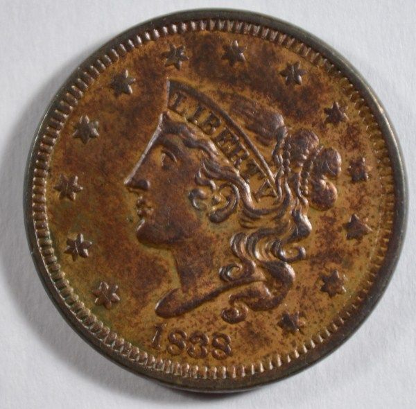 1838 Large Cent Ch Brown Unc 60+ Well struck attractive