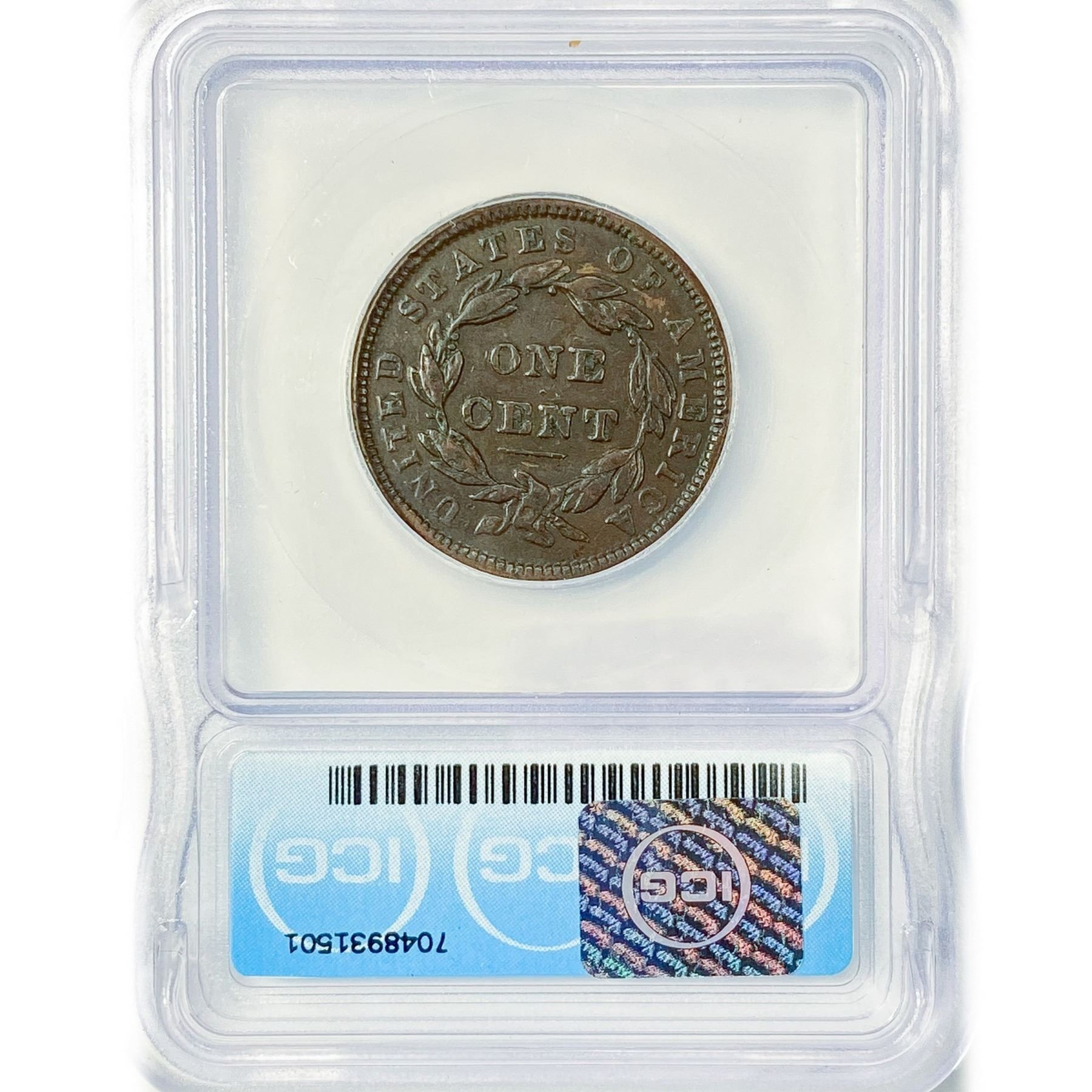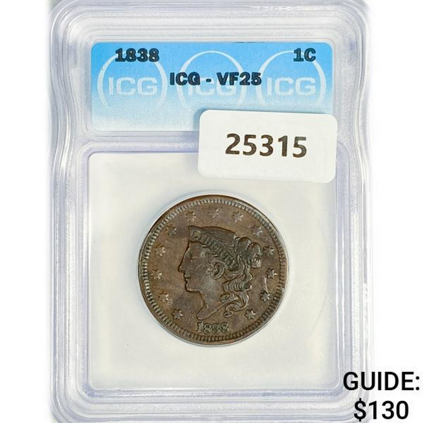 1838 Large Cent ICG VF25