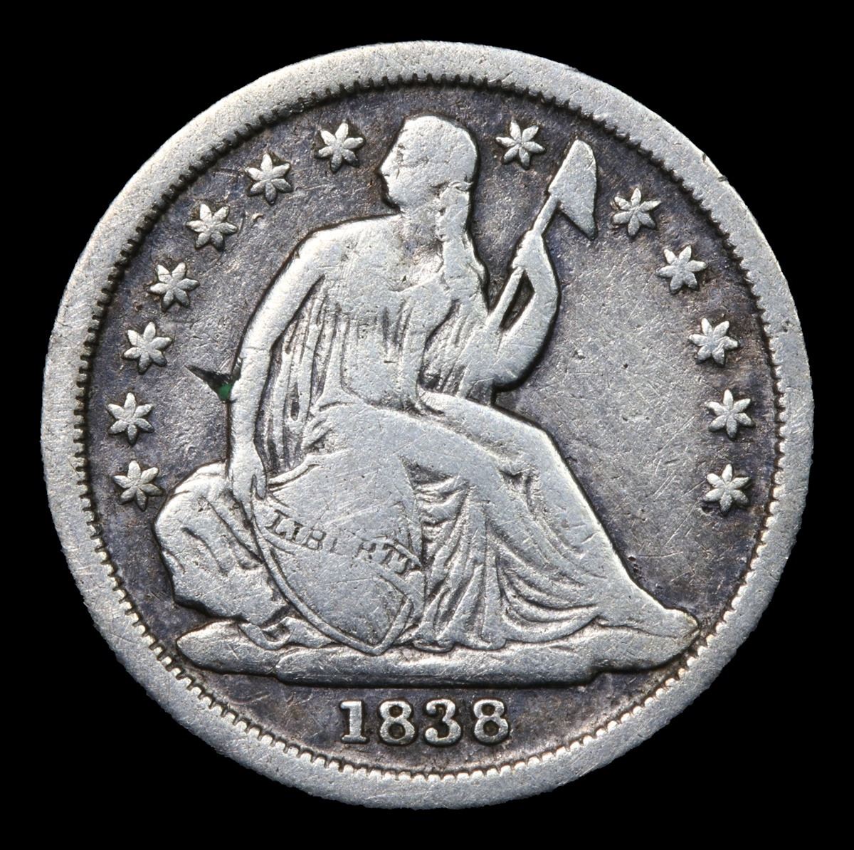 1838 Large Stars . . Seated Liberty Dime 10c Grades f+.