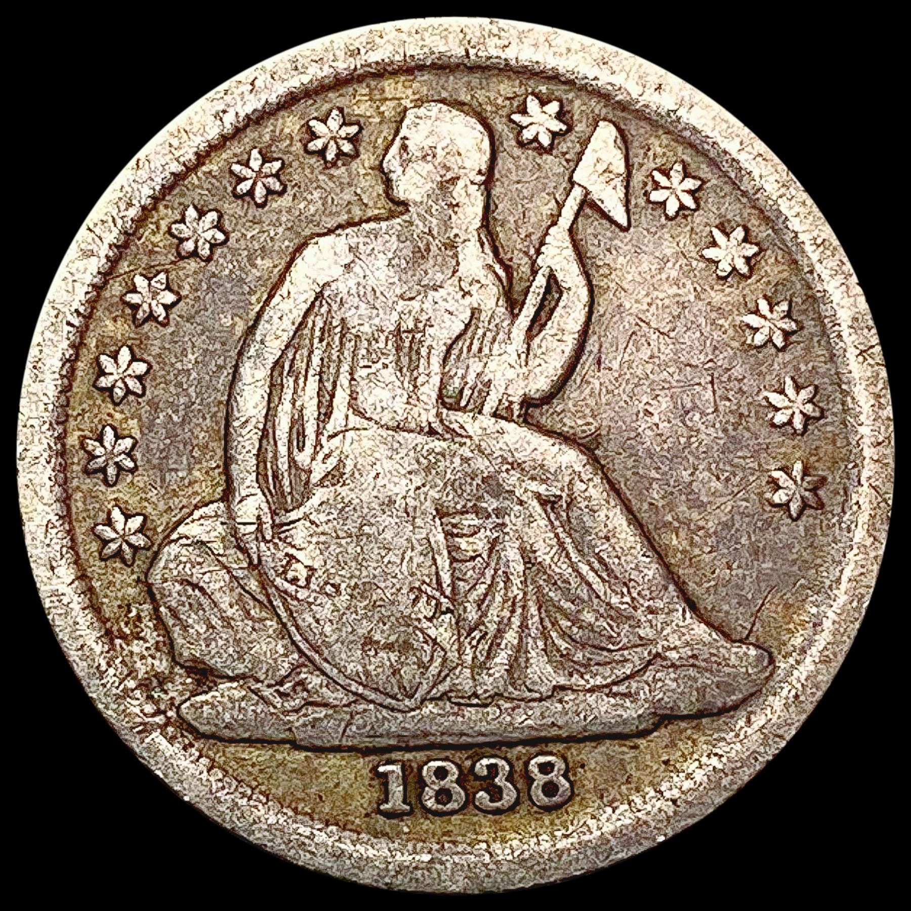 1838 Lg Stars Seated Liberty Dime NICELY CIRCULATED