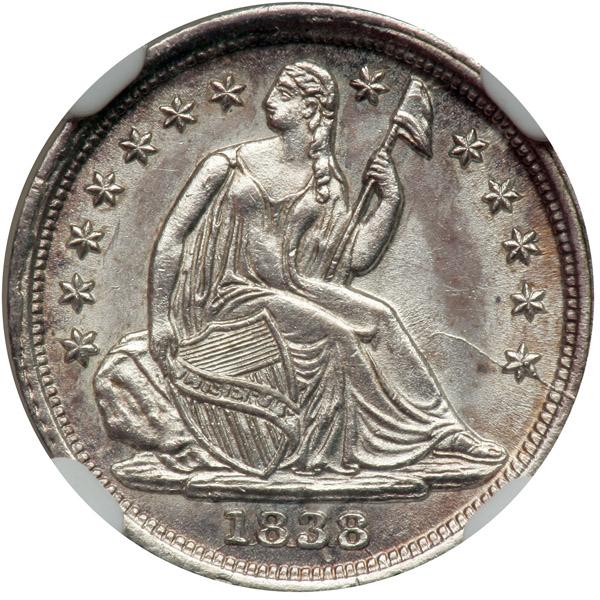 1838 No Drapery. NGC graded MS-63. Well struck and mostly untoned.