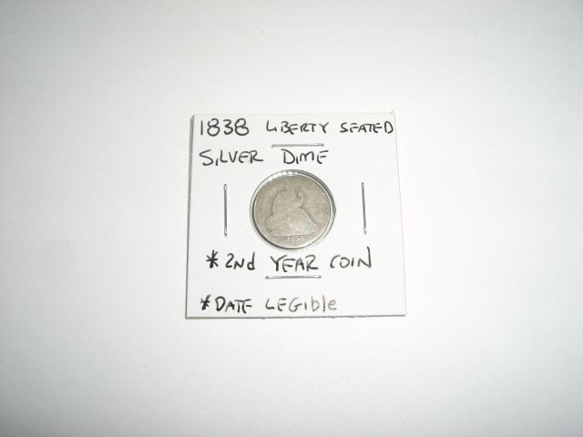 1838 Liberty Seated SILVER Dime *EXTREMELY RARE DATE LEGIBLE 2nd YEAR COIN - PLEASE LOOK AT PICTURE TO DETERMINE GRADE - NICE COIN*!! ***Coin, Currency & All Items Listed in this auction - Grades, Conditions and Values are not Safe Deposit Coins LLC Responsibilty. Grades, Condition and Values are determined by Consigner(s) & Buyers ONLY***