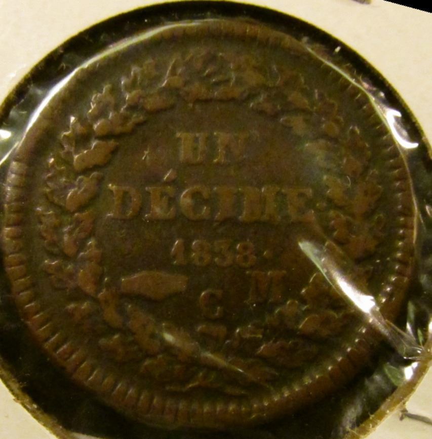 1838-M ONE DECIME COIN FROM MONACO - KM NUMBER 97.1