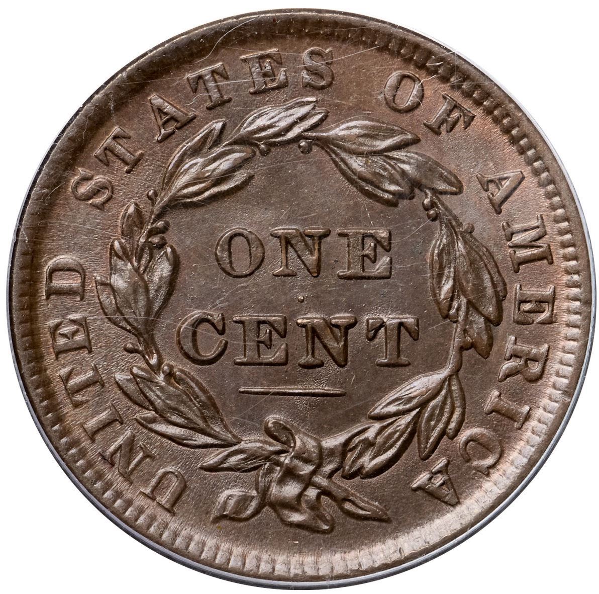 1838 N-4 R2 PCGS graded MS66 BrownLustrous brown and light olive. The surfaces are satiny and the only marks are a small spot of darker toning (not carbon) in the field at the middle of the nose and two tiny ticks right of star 5. LDS, die state g, with a cud break from the rim under the 83 reaching up to the base of the 8 but not quite touching the 3. (In the latest state, this cud touches the 3.) Fine die rust covers much of the portrait, especially on the face, leaving a sandpaper texture. A very nice example of this interesting die state. Called MS62 and tied for CC#6 in the Noyes census, his photo #34489. Our grade is MS62+, close to MS63.Certificate Number: 37189.66/13092970Pedigree: Ex Douglas F. Bird 5/5/1996-R. E. "Ted" Naftzger, Jr.-Naftzger Estate, McCawley & Grellman Auctions/Goldbergs 2/1/2009:414-Terry S. Denman Collection