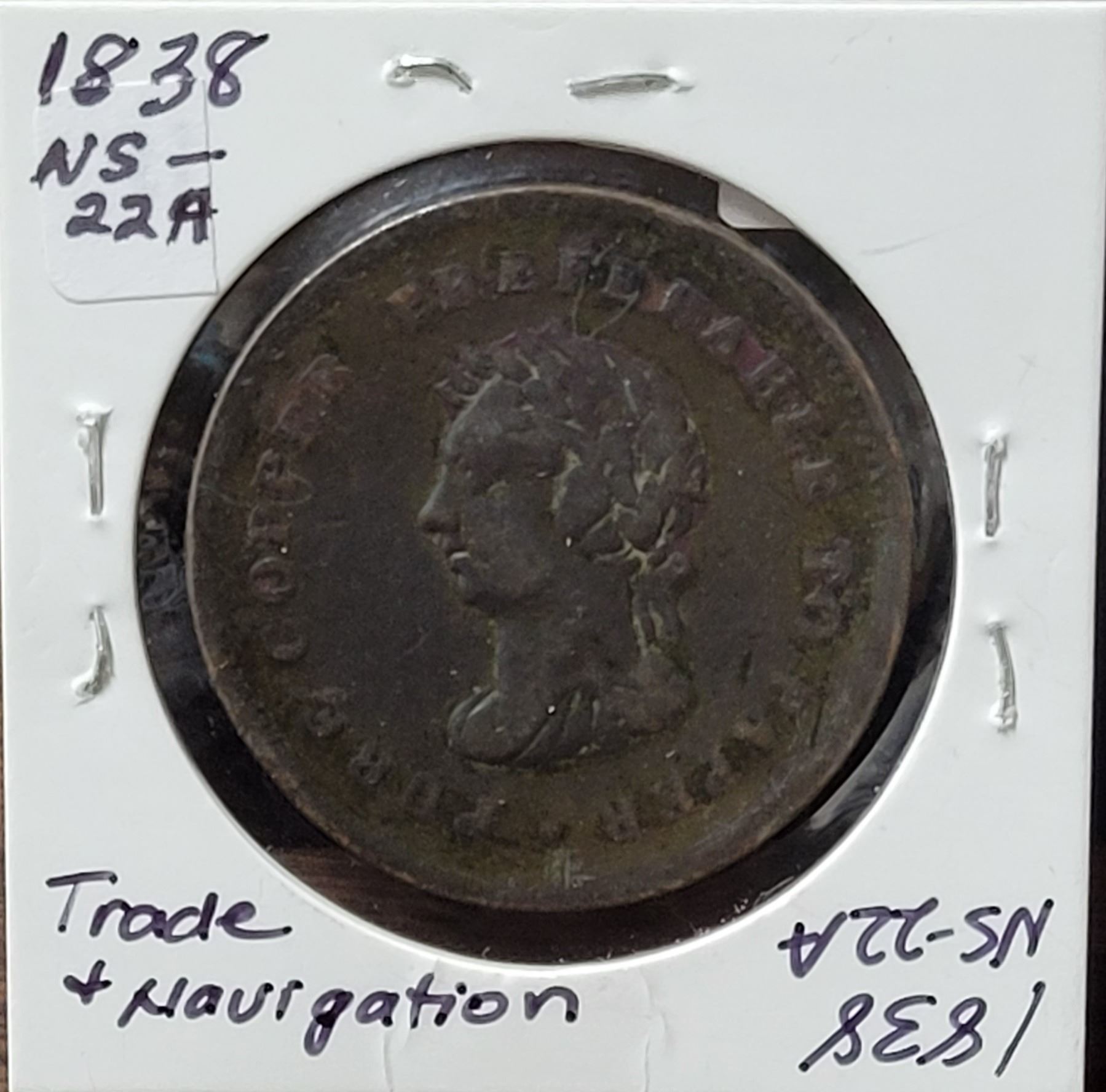 1838 NS-22A Nova Scotia Trade & Navigation Token