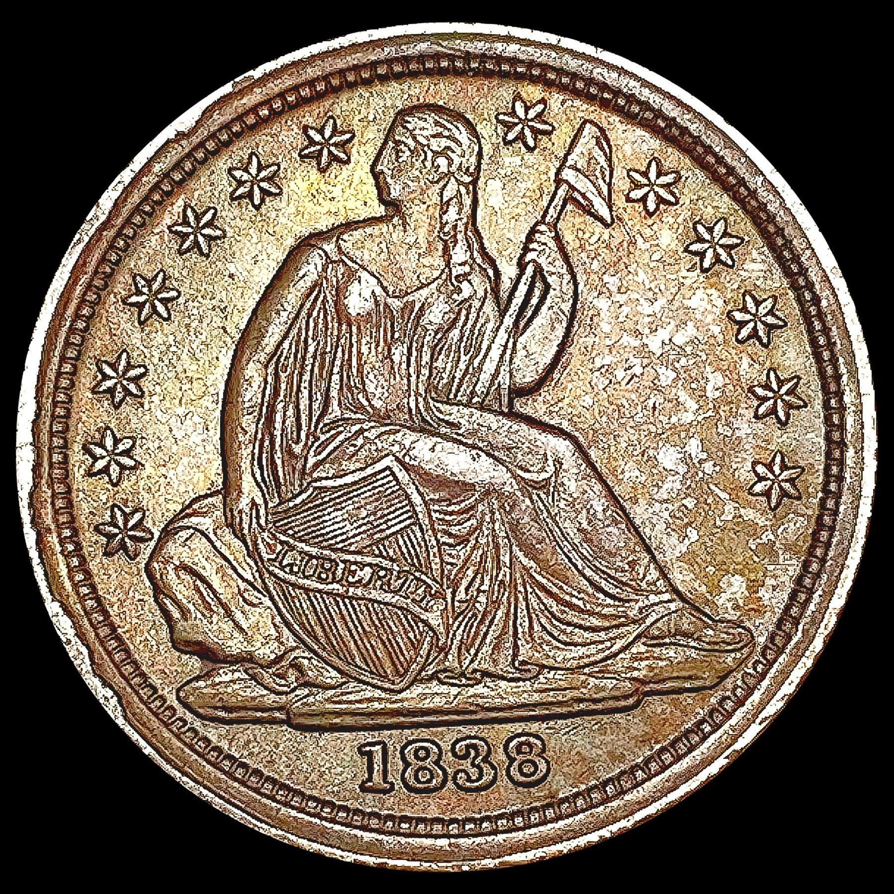 1838 No DLg Stars Seated Liberty Dime UNCIRCULATED