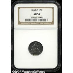 <table><tr><td><TABLE cellSpacing=0 cellPadding=0 width="100%" bgColor=#000000 border=0><TBODY> <TR><TD width="100%"><TABLE cellSpacing=1 cellPadding=3 width="100%" border=0><TBODY><TR><TD width="100%" bgColor=#79735c><FONT face=arial color=#ffffff size=3><B>Description</B> </FONT></TD></TR><TR><TD width="100%" bgColor=#ffffff><FONT face=arial size=2><B>1838-O 10C No Stars AU58 NGC.</B></I> A well struck representative that features medium mauve patina, attractive surfaces, and bold definition. Light friction on Liberty's knees and breasts prevents a Mint State grade. The first Dime issue from the New Orleans Mint, and the only O-mint No Stars, Small Wreath Dime issue. By far the scarcest issue of the short-lived type. Population: 17 in 58, 19 finer (11/03). </FONT></TD></TR></TBODY></TABLE></TD></TR></TBODY></TABLE><BR><A name=PricesRealized></A><TABLE cellSpacing=0 cellPadding=0 width="100%" bgColor=#000000 border=0><TBODY><TR><TD width="100%"><TABLE cellSpacing=1 cellPadding=3 width="100%" border=0><TBODY><TR><TD width="100%" bgColor=#79735c><A name=PR><FONT face=arial color=#ffffff size=3><B>Previous Prices from Heritage Auctions</B> </FONT></A></TD></TR><TR><TD bgColor=#f6f6ed><TABLE cellSpacing=0 cellPadding=0 width="100%" border=1><TBODY><TR><TD align=middle width="33%"><B>Date</B></TD><TD align=middle width="33%"><B>Service</B></TD><TD align=middle width="33%"><B>Price</B></TD></TR><TR bgColor=whitesmoke><TD width="33%"><B>08/08/2001</B></TD><TD width="33%">NGC</TD><TD width="33%">$1,322.50</TD></TR><TR bgColor=whitesmoke><TD width="33%"><B>08/07/1998</B></TD><TD width="33%">NGC</TD><TD width="33%">$1,840.00</TD></TR><TR bgColor=whitesmoke><TD width="33%"><B>01/01/2000</B></TD><TD width="33%">PCGS</TD><TD width="33%">$2,070.00</TD></TR></TBODY></TABLE></TD></TR><TR><TD bgColor=#ffffff><FONT face=arial size=1 ?>PLEASE NOTE: All prices realized reflect the final hammer price PLUS the buyer's premium in auctions that charge a buyer's premium. Each item has a notation at the top of the listing indicating whether that lot included a buyer's premium. Example: A item that sells with a final hammer price of $100 and a 20% buyer's premium will display with a price realized of $120. All information listed is intended to be as accurate as possible, but errors are possible. Please use this guide carefully and inform us of any inaccuracies. </FONT></TD></TR></TBODY></TABLE></TD></TR></TBODY></TABLE><BR><TABLE cellSpacing=0 cellPadding=0 width="100%" bgColor=#000000 border=0><TBODY><TR><TD width="100%"><TABLE cellSpacing=1 cellPadding=3 width="100%" border=0><TBODY><TR><TD width="100%" bgColor=#79735c colSpan=6><FONT face=arial color=#ffffff size=3><B>Price Guide*</B> </FONT></TD></TR><TR bgColor=#f6f6ed><TD align=middle><B>Grade</B> </TD><TD align=middle><B>Coin World<BR>(Trends)</B> </TD><TD align=middle><B>Numismedia<BR>Retail</B> </TD><TD align=middle><B>Numismedia<BR>Wholesale</B> </TD><TD align=middle><B>Coin<BR>Universe</B> </TD><TD align=middle><B>Heritage<BR>Value Index</B> </TD></TR><TR bgColor=#ffffff><TD align=middle>55</TD><TD align=right>$1,800.00</TD><TD align=right>---</TD><TD align=right>$1,250.00</TD><TD align=right>$1,625.00</TD><TD align=right>$1,216.88</TD></TR><TR style="FONT-WEIGHT: bold" bgColor=#cccfdd><TD align=middle>58</TD><TD align=right>---</TD><TD align=right>---</TD><TD align=right>$1,350.00</TD><TD align=right>---</TD><TD align=right>$1,752.67</TD></TR><TR bgColor=#ffffff><TD align=middle>60</TD><TD align=right>$3,000.00</TD><TD align=right>---</TD><TD align=right>$1,800.00</TD><TD align=right>$3,250.00</TD><TD align=right>$2,088.33</TD></TR><TR bgColor=#ffffff><TD colSpan=6><FONT size=1>*All information listed is intended to be as accurate as possible, but errors are possible. No item may be returned or refused based on this information which is provided as a service to our customers. You should contact each pricing source directly to determine the accuracy of this information. </FONT></TD></TR></TBODY></TABLE></TD></TR></TBODY></TABLE><BR><TABLE cellSpacing=0 cellPadding=0 width="100%" bgColor=#000000 border=0><TBODY><TR><TD width="100%"><TABLE cellSpacing=1 cellPadding=3 width="100%" border=0><TBODY><TR><TD width="100%" bgColor=#79735c><FONT face=arial color=#ffffff size=3><B>Population Guide</B> </FONT></TD></TR><TR bgColor=#ffffff><TD align=middle><!-- Begin Output of Population Grid--><TABLE cellSpacing=0 cellPadding=0 width="100%" border=0><TBODY><TR><TD vAlign=center><TABLE cellSpacing=0 width="100%" border=1 cellsadding="3"><TBODY><TR><TD vAlign=center><TABLE cellSpacing=0 cellPadding=3 width="100%" border=1><TBODY><TR><TD vAlign=center align=middle bgColor=#f0f1e8 colSpan=2 <CENTER><FONT face=Arial size=2><B>PCGS Pop </B></FONT><CENTER></CENTER></TD><TD vAlign=center align=middle bgColor=#f0f1e8 colSpan=2><CENTER><FONT face=Arial size=2><B>NGC Pop</B></CENTER></FONT></TD></TR><TR><TD vAlign=center><FONT face=Arial size=2>(58)</FONT> </TD><TD vAlign=center align=right><FONT face=Arial size=2>10</FONT> </TD><TD vAlign=center><FONT face=Arial size=2>(58)</FONT> </TD><TD vAlign=center align=right><FONT face=Arial size=2>18</FONT> </TD></TR><TR><TD vAlign=center><FONT face=Arial size=2>(>58)</FONT> </TD><TD vAlign=center align=right><FONT face=Arial size=2>23</FONT> </TD><TD vAlign=center><FONT face=Arial size=2>(>58)</FONT> </TD><TD vAlign=center align=right><FONT face=Arial size=2>22</FONT> </TD></TR></TBODY></TABLE></TD></TR></TBODY></TABLE></TD></TR></TBODY></TABLE><!-- End Output of Population Grid--></TD></TR></TBODY></TABLE></TD></TR></TBODY></TABLE><BR><TABLE cellSpacing=0 cellPadding=0 width="100%" bgColor=#000000 border=0><TBODY><TR> <font color='#000000'><span style='background-color: #FFFFFF'><td bgcolor='#FFFFFE'> Important notice: Heritage usually auctions material at the rate of 200-250 lots per hour. On some occasions eBay Live bid software or the Internet may not be able to keep up with the pace of the auction. We recommend placing a reali