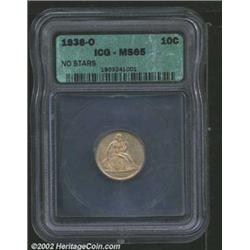 1838-O 10C No Stars MS65 ICG. Mintage: 406,034.  The current Coin Dealer Newsletter (Greysheet) wholesale "bid" price is $5100.00.