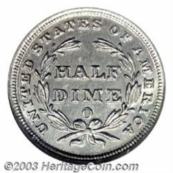 <table><tr><td><TABLE cellSpacing=0 cellPadding=0 width="100%" bgColor=#000000 border=0><TBODY> <TR><TD width="100%"><TABLE cellSpacing=1 cellPadding=3 width="100%" border=0><TBODY><TR><TD width="100%" bgColor=#79735c><FONT face=arial color=#ffffff size=3><B>Description</B> </FONT></TD></TR><TR><TD width="100%" bgColor=#ffffff><FONT face=arial size=2><B>1838-O H10C No Stars MS64 NGC.</B></I> By far the scarcer of two No Stars Half Dime issues and, more importantly, the first Half Dime issue struck at the New Orleans Mint. Just 70,000 pieces were produced. One might expect that the novelty of the '38-O Half Dime would lead to many dozens, even hundreds being spared from circulation, but such does not seem to be the case at all. The present example is one of perhaps twenty known Uncirculated survivors and is currently tied with 4 others as the second finest known to both services combined. The strike is typically bold and both sides are untoned. Some slight muting of the luster is the only mentionable, grade-limiting factor. Population: 3 in 64, 1 finer (7/03). </FONT></TD></TR></TBODY></TABLE></TD></TR></TBODY></TABLE><BR><A name=PricesRealized></A><TABLE cellSpacing=0 cellPadding=0 width="100%" bgColor=#000000 border=0><TBODY><TR><TD width="100%"><TABLE cellSpacing=1 cellPadding=3 width="100%" border=0><TBODY><TR><TD width="100%" bgColor=#79735c><A name=PR><FONT face=arial color=#ffffff size=3><B>Previous Prices from Heritage Auctions</B> </FONT></A></TD></TR><TR><TD bgColor=#f6f6ed>No Prior Data Recorded </TD></TR><TR><TD bgColor=#ffffff><FONT face=arial size=1 ?>PLEASE NOTE: All prices realized reflect the final hammer price PLUS the buyer's premium in auctions that charge a buyer's premium. Each item has a notation at the top of the listing indicating whether that lot included a buyer's premium. Example: A item that sells with a final hammer price of $100 and a 20% buyer's premium will display with a price realized of $120. All information listed is intended to be as accurate as possible, but errors are possible. Please use this guide carefully and inform us of any inaccuracies. </FONT></TD></TR></TBODY></TABLE></TD></TR></TBODY></TABLE><BR><TABLE cellSpacing=0 cellPadding=0 width="100%" bgColor=#000000 border=0><TBODY><TR><TD width="100%"><TABLE cellSpacing=1 cellPadding=3 width="100%" border=0><TBODY><TR><TD width="100%" bgColor=#79735c colSpan=6><FONT face=arial color=#ffffff size=3><B>Price Guide*</B> </FONT></TD></TR><TR bgColor=#f6f6ed><TD align=middle><B>Grade</B> </TD><TD align=middle><B>Coin World<BR>(Trends)</B> </TD><TD align=middle><B>Numismedia<BR>Retail</B> </TD><TD align=middle><B>Numismedia<BR>Wholesale</B> </TD><TD align=middle><B>Coin<BR>Universe</B> </TD><TD align=middle><B>Heritage<BR>Value Index</B> </TD></TR><TR bgColor=#ffffff><TD align=middle>63</TD><TD align=right>$8,800.00</TD><TD align=right>---</TD><TD align=right>$6,650.00</TD><TD align=right>---</TD><TD align=right>$5,600.00</TD></TR><TR style="FONT-WEIGHT: bold" bgColor=#cccfdd><TD align=middle>64</TD><TD align=right>$17,500.00</TD><TD align=right>---</TD><TD align=right>---</TD><TD align=right>---</TD><TD align=right>$11,075.00</TD></TR><TR bgColor=#ffffff><TD align=middle>65</TD><TD align=right>---</TD><TD align=right>---</TD><TD align=right>---</TD><TD align=right>---</TD><TD align=right>$15,750.00</TD></TR><TR bgColor=#ffffff><TD colSpan=6><FONT size=1>*All information listed is intended to be as accurate as possible, but errors are possible. No item may be returned or refused based on this information which is provided as a service to our customers. You should contact each pricing source directly to determine the accuracy of this information. </FONT></TD></TR></TBODY></TABLE></TD></TR></TBODY></TABLE><BR><TABLE cellSpacing=0 cellPadding=0 width="100%" bgColor=#000000 border=0><TBODY><TR><TD width="100%"><TABLE cellSpacing=1 cellPadding=3 width="100%" border=0><TBODY><TR><TD width="100%" bgColor=#79735c><FONT face=arial color=#ffffff size=3><B>Population Guide</B> </FONT></TD></TR><TR bgColor=#ffffff><TD align=middle><!-- Begin Output of Population Grid--><TABLE cellSpacing=0 cellPadding=0 width="100%" border=0><TBODY><TR><TD vAlign=center><TABLE cellSpacing=0 width="100%" border=1 cellsadding="3"><TBODY><TR><TD vAlign=center><TABLE cellSpacing=0 cellPadding=3 width="100%" border=1><TBODY><TR><TD vAlign=center align=middle bgColor=#f0f1e8 colSpan=2 <CENTER><FONT face=Arial size=2><B>PCGS Pop </B></FONT><CENTER></CENTER></TD><TD vAlign=center align=middle bgColor=#f0f1e8 colSpan=2><CENTER><FONT face=Arial size=2><B>NGC Pop</B></CENTER></FONT></TD></TR><TR><TD vAlign=center><FONT face=Arial size=2>(64)</FONT> </TD><TD vAlign=center align=right><FONT face=Arial size=2>2</FONT> </TD><TD vAlign=center><FONT face=Arial size=2>(64)</FONT> </TD><TD vAlign=center align=right><FONT face=Arial size=2>3</FONT> </TD></TR><TR><TD vAlign=center><FONT face=Arial size=2>(>64)</FONT> </TD><TD vAlign=center align=right><FONT face=Arial size=2>0</FONT> </TD><TD vAlign=center><FONT face=Arial size=2>(>64)</FONT> </TD><TD vAlign=center align=right><FONT face=Arial size=2>1</FONT> </TD></TR></TBODY></TABLE></TD></TR></TBODY></TABLE></TD></TR></TBODY></TABLE><!-- End Output of Population Grid--></TD></TR></TBODY></TABLE></TD></TR></TBODY></TABLE><BR><TABLE cellSpacing=0 cellPadding=0 width="100%" bgColor=#000000 border=0><TBODY><TR> Important notice: Heritage usually auctions material at the rate of 200-250 lots per hour. On some occasions eBay Live bid software or the Internet may not be able to keep up with the pace of the auction. We recommend placing a realistic absentee bid now as insurance to avoid disappointment. Occasionally the auctioneer may eliminate or reject an eBay Live bid, and the auctioneer may also reopen a lot after the close of the eBay live bidding (usually because we missed an audience bid), and may reject your bid even if it shows you as the winning bidder. By bidding via eBay Live, you agree that Her