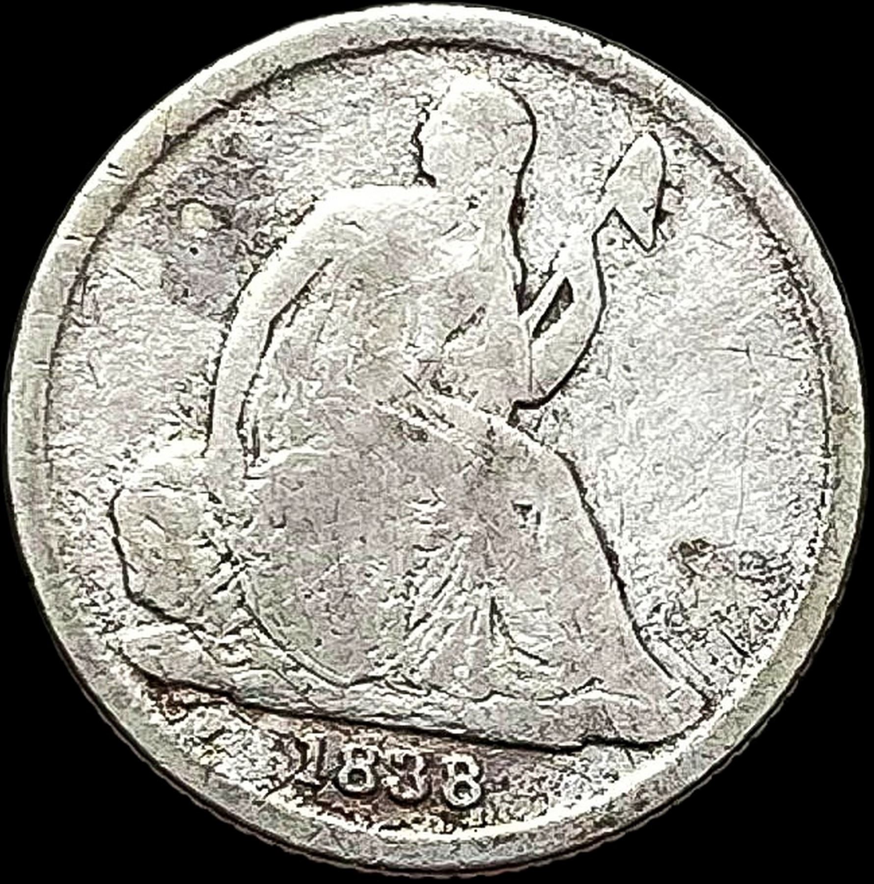 1838-O No Stars Seated Liberty Dime LIGHTLY CIRCULATED