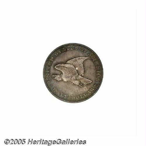 <B>1838<P50C> Half Dollar, Judd-73 Restrike, Pollock-77, R.5, PR64 PCGS.</B></I> The obverse depicts a draped bust of Liberty facing left with thirteen stars around the periphery and the date below. Liberty is wearing a diadem and the scroll over her hair is inscribed with LIBERTY. A flying eagle facing left dominates the reverse. The legend UNITED STATES OF AMERICA and the denomination HALF DOLLAR are around the periphery. Struck in silver with a reeded edge and medallic alignment of the dies. The highpoints are typically struck for this restrike issue, and a trio of spindly die cracks (as made) wander across the reverse. An attractive near-Gem example with pale gray and gold coloration, highlighted by traces of light blue toning.