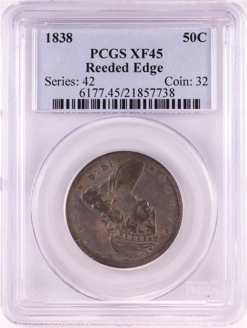 One 1838 Reeded Edge Capped Bust Half Dollar Coin PCGS XF45. PCGS Graded.