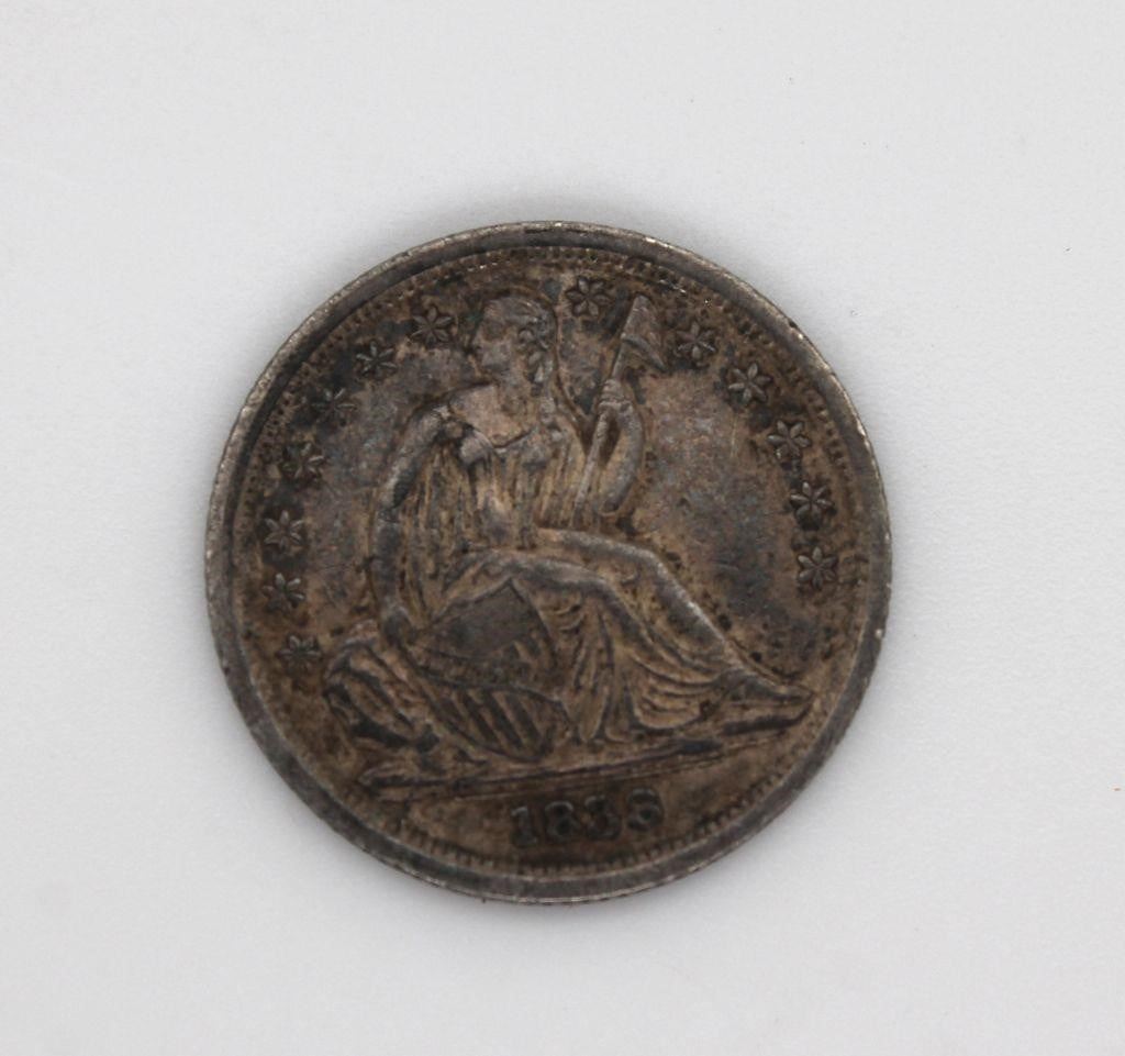 A really nice original Extremely-Fine (XF) 1838 Seated Dime Large Stars Variety. Usually seen cleaned, this early Seated Dime is strictly original and nice.