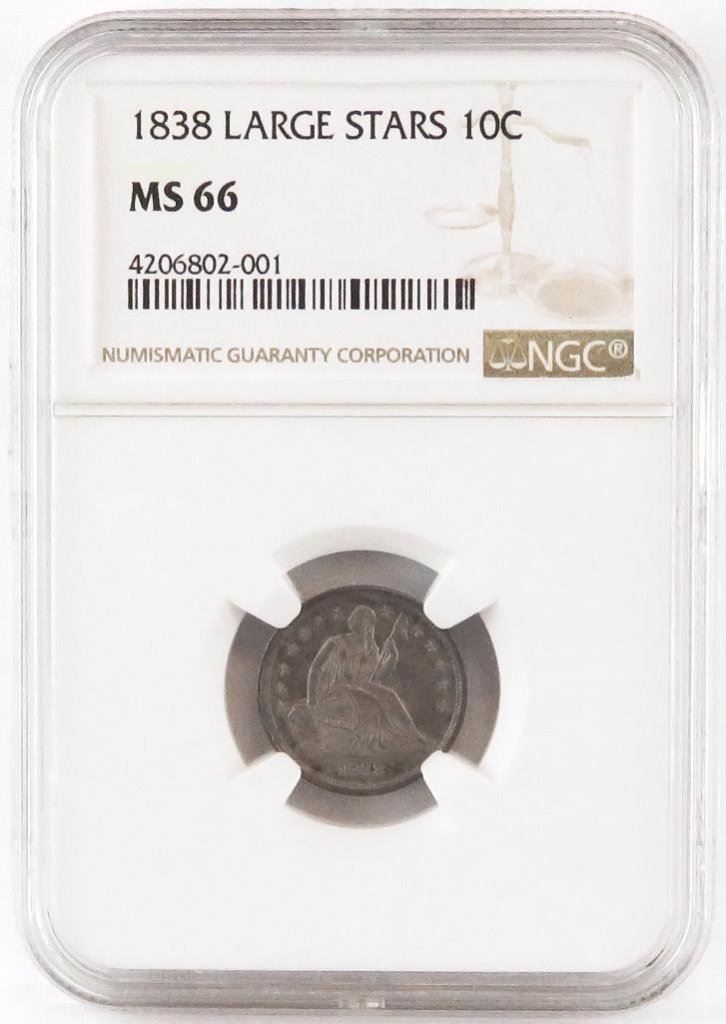 1838 Seated Liberty Dime - Large Stars. NGC Certified MS66.