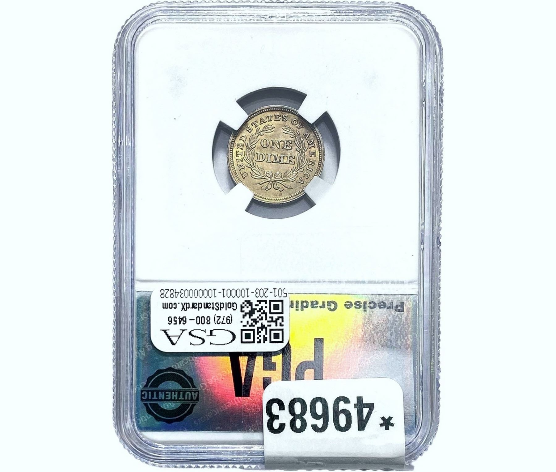 l. All non-certified coins and currency are guaranteed genuine, but are not guaranteed as to grade, since grading is a matter of opinion, an art and not a science, and therefore the description rendered by GSA or any third-party grading service may not agree with the opinion of others (including trained experts), and the same expert may not grade the same item with the same grade at two different times. GSA may, but is not obligated to, express an opinion as to non-certified numismatic items, in GSA’s opinion, or by its employees’ experience and the current interpretation of the American Numismatic Association’s standards as of the date the catalog was prepared. There is no guarantee or warranty expressed or implied that the grading opinions utilized by GSA, if any, will meet the standards of any grading service at any time in the future.