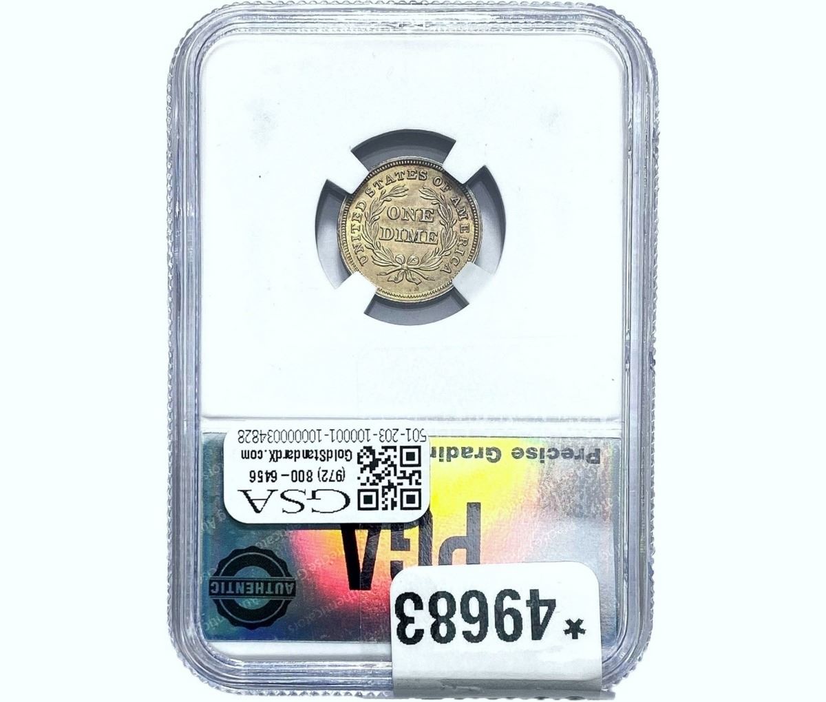 c. THREE (3) DAY RETURN POLICY. Certified Coin and Uncertified and Certified Currency lots paid for within seven (7) days of the auction or “Buy it Now” salemay be sold with three (3) day return privileges (only upon written pre-approval by GSA) unless otherwise noted in the description as “Sold As Is / No Return”. You may return Product(s) under the following limited conditions with written pre-approval from GSA: (i) within three (3) days of receipt of the Product(s), you must first notify GSA by email (at info@bidgoldstandard.com) and telephone (972-800-6456), obtain written pre-approval via email, and immediately ship the return Product(s) in their original condition, fully insured, and housed in their original holder or packaging, to the attention of “GOLD STANDARD AUCTIONS, LLC – RETURNS, 13859 Diplomat Drive, #150, Dallas, TX 75234.” Said return Product(s) must be in GSA’s possession, custody and control within thirty (30) days after the conclusion of the Product(s) auction or such return privileges are revoked without further notice and the late Product will be shipped back to the Bidder at his/her/its sole expense. A non-negotiable restocking fee of fifteen percent (15%) of the purchase price ($10.00 per Product/lot minimum) will be deducted from the refund for each returned Product (or billed directly to the Bidder). Postage and handling, customs, and other fees are not refunded. After the three-day period (from Bidder’s receipt), no Product(s) may be returned for any reason. Late remittance for purchases revokes all return privileges.