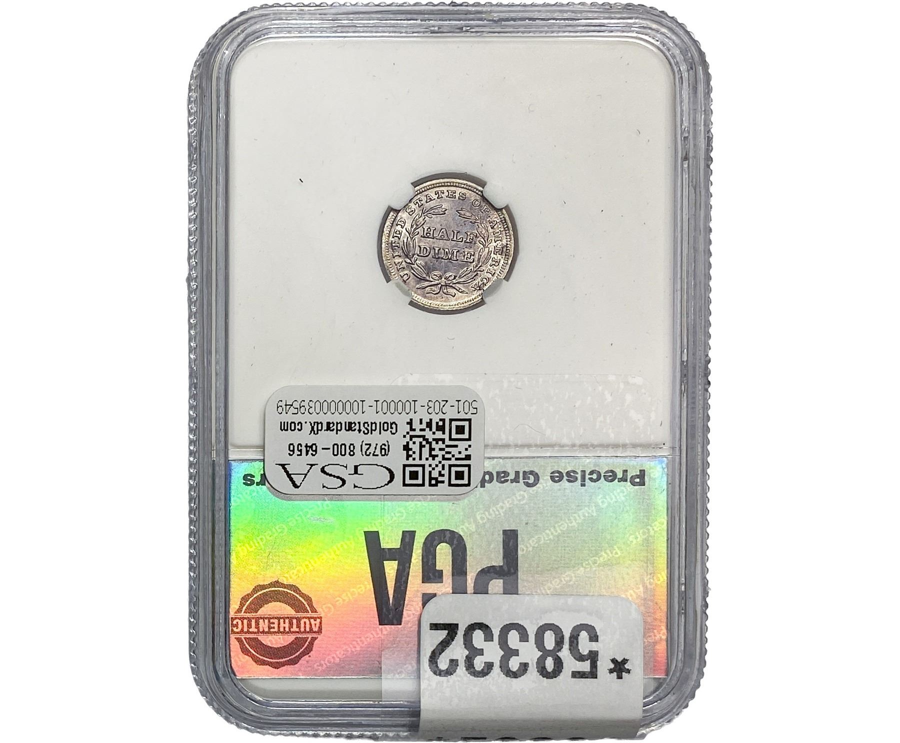 l. All non-certified coins and currency are guaranteed genuine, but are not guaranteed as to grade, since grading is a matter of opinion, an art and not a science, and therefore the description rendered by GSA or any third-party grading service may not agree with the opinion of others (including trained experts), and the same expert may not grade the same item with the same grade at two different times. GSA may, but is not obligated to, express an opinion as to non-certified numismatic items, in GSA’s opinion, or by its employees’ experience and the current interpretation of the American Numismatic Association’s standards as of the date the catalog was prepared. There is no guarantee or warranty expressed or implied that the grading opinions utilized by GSA, if any, will meet the standards of any grading service at any time in the future.