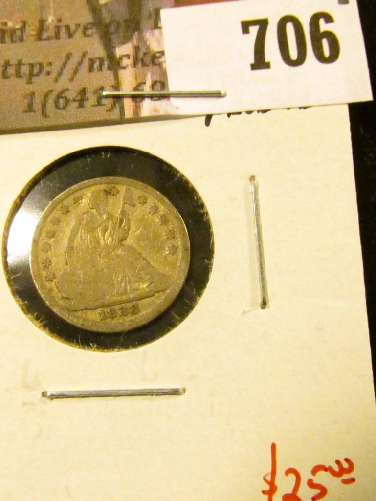 1838 Seated Liberty Half Dime, VG obverse, flatly struck reverse, value $25