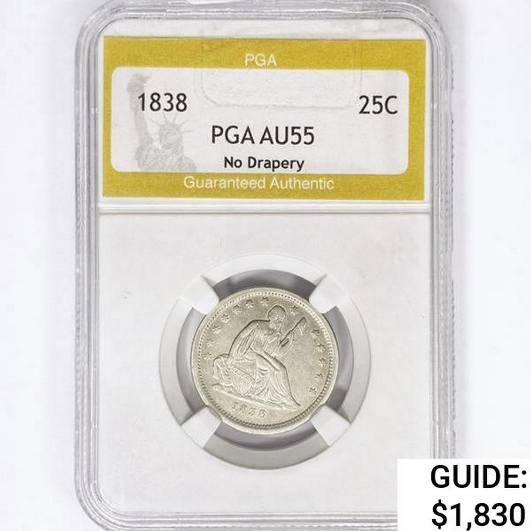 1838 Seated Liberty Quarter PGA AU55 No Drapery