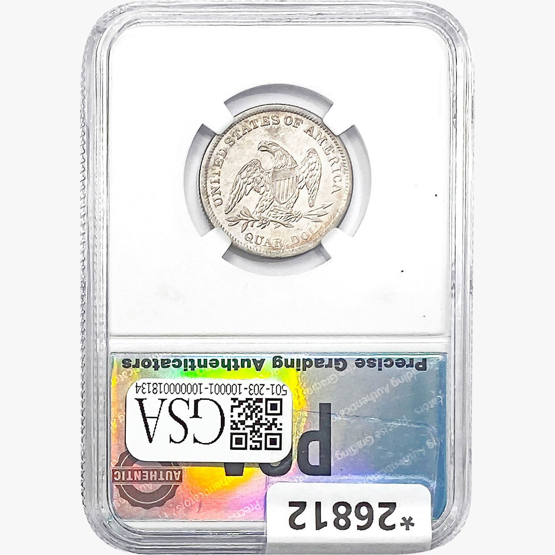 COINS AND CURRENCY LISTED IN GSA’S CATALOG AS GRADED AND ENCAPSULATED BY PCGS, NGC, ANACS, ICG, PCGS CURRENCY, PMG, PCGS BANKNOTE GRADING, CMC OR ANY OTHER THIRD-PARTY GRADING SERVICE ARE LIKEWISE SOLD “AS-IS” EXCEPT AS EXPRESSLY SET FORTH HEREIN. ALL THIRD-PARTY GRADING SERVICE GUARANTEES, INCLUDING AUTHENTICITY, ARE THE SOLE RESPONSIBILITY OF THE THIRD-PARTY GRADING SERVICE AND NOT WARRANTIES OR GUARANTEES OF GSA. BIDDERS SHOULD CONTACT THESE THIRD-PARTY GRADING SERVICES DIRECTLY WITH RESPECT TO ANY CLAIMS OR QUESTIONS THEY MAY HAVE CONCERNING THEIR GUARANTEES AND WARRANTIES. BIDDERS ACKNOWLEDGE AND AGREE THAT AUCTIONEER IS NOT BOUND BY OR LIABLE FOR ANY OPINION OR CERTIFICATION BY ANY THIRD-PARTY GRADING SERVICE. REMOVAL OF A PRODUCT FROM ITS PROTECTIVE CASING OR HOLDER OR ALTERATION OF ANY COIN HOLDER WAIVES ALL RIGHTS CONCERNING THE PRODUCT CONTAINED THEREIN.