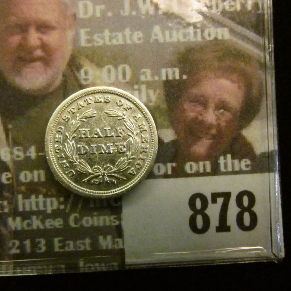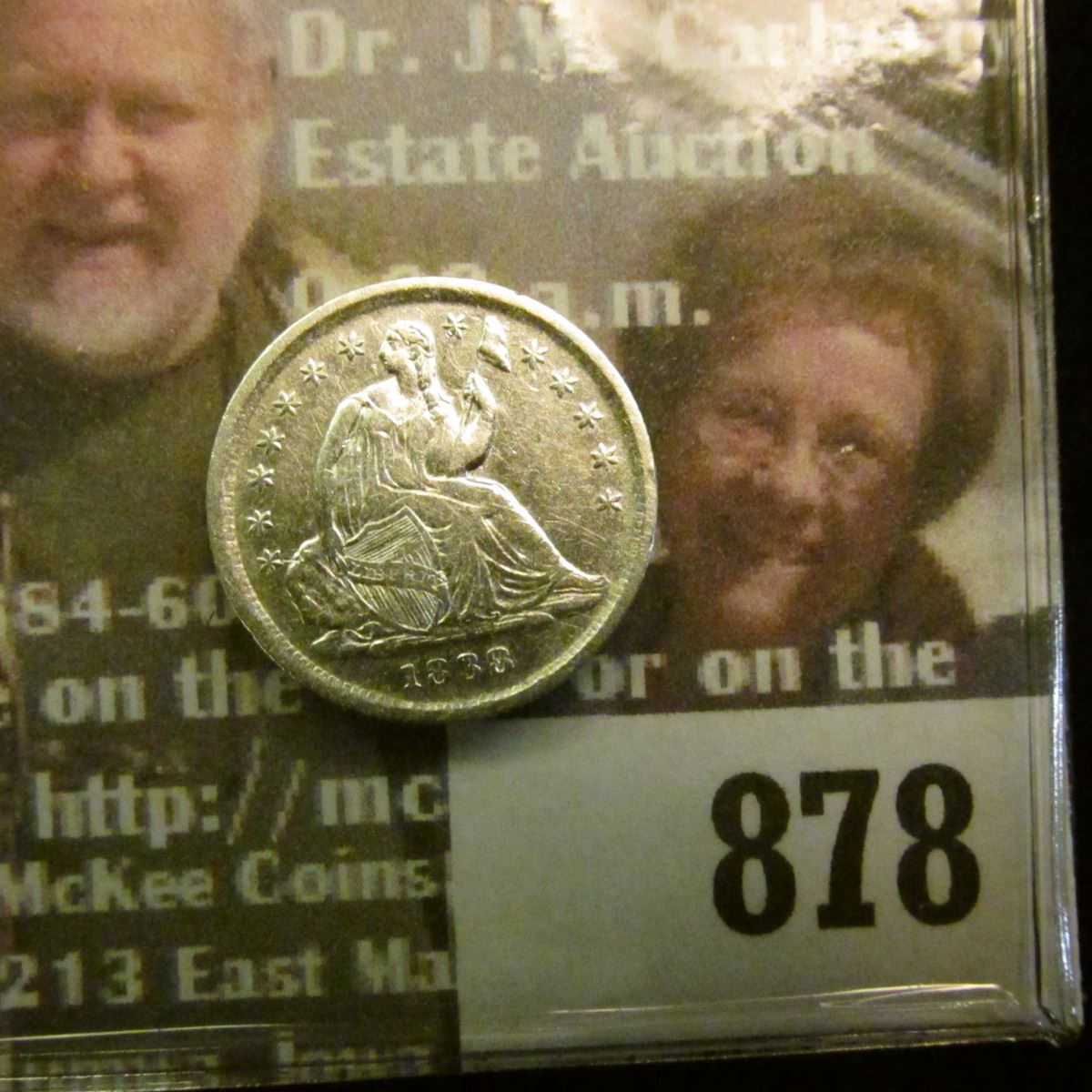1838 U.S. Seated Liberty Half Dime, No Drapery, Large Stars, AU details, cleaned.