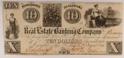 1839 $10 REAL ESTATE BANKING CO. DECATUR, MS XF