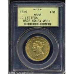 1839 $10 Type of 1838, Large Letters MS60 PCGS.