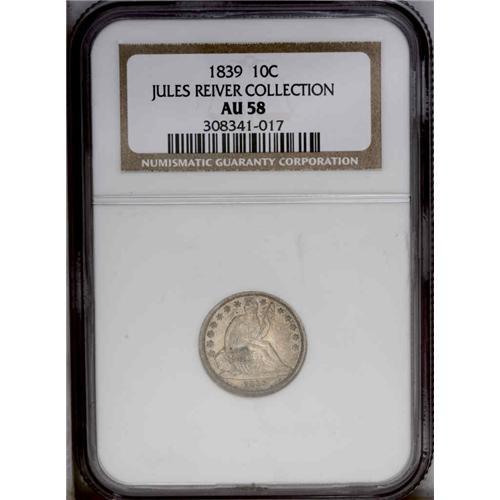 1839 10C No Drapery AU58 NGC. Medium chestnut-gray ton 1839[10C] No Drapery AU58 NGC.