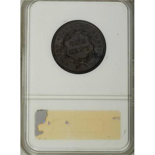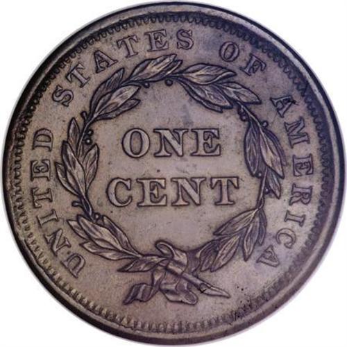 <B>1839 1C Type of 1840 MS65 Brown NGC.</B></I> N-8, R.1. The only known dies for the 1839 Type of 1840 cent. This lustrous Gem has pristine dark chocolate surfaces with full cartwheels. A splash of darker steel is evident on the reverse. Mint State 1839 cents of all types are elusive, even those that are considered common varieties. EAC 60.<BR><BR><B>Coin Engraver:</B> Christian Gobrecht<BR><BR><b>Shipping:</b> Coins & Currency (<a target="_blank" href="http://www.heritageauctions.com/common/shipping.php">view shipping information</a>)