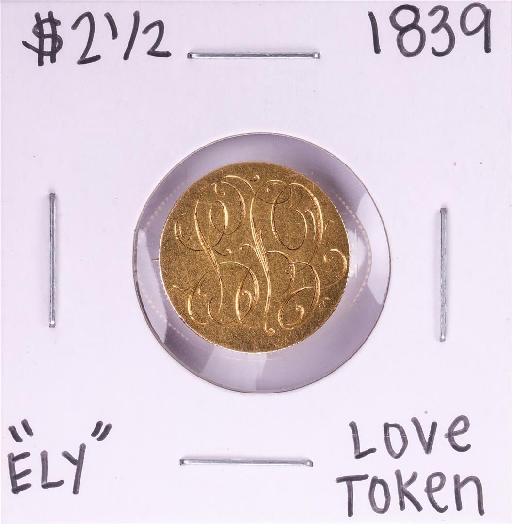 1839 $2 1/2 Classic Head Quarter Eagle Gold Coin Love Token Pin