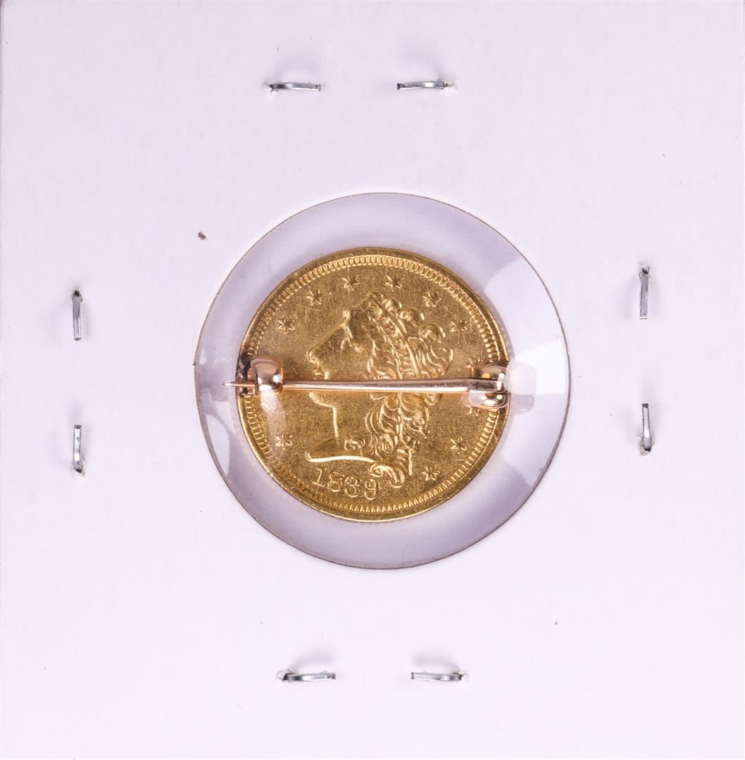 One 1839 $2 1/2 Classic Head Quarter Eagle Gold Coin Love Token Pin.